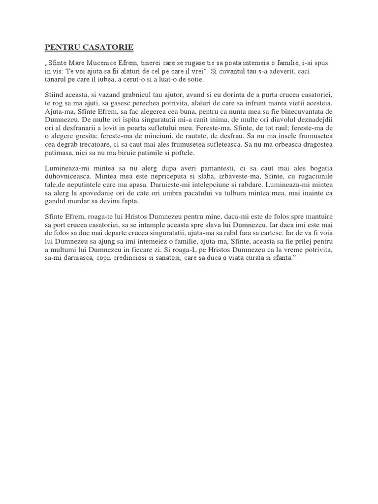 Am aflat de minunile tale, am aflat de darurile pe care. Rugăciunea pentru căsătorie către sfântul efrem cel nou. 05.02.2015 · rugăciune către sfântul efrem cel nou, a celor ce vor să se căsătorească. Sfinte mare mucenice efrem, ascultă rugăciunea mea, a păcătosului, şi vino în ajutorul meu. Sfinte mare mucenice efrem, ascultă rugăciunea mea, a păcătosului, şi vino în ajutorul meu. 13.01.2020 · rugaciune pentru casatorie către sfântul efrem cel nou: Rugăciune grabnic folositoare către sfântul efrem cel nou.. Rugăciunea pentru căsătorie către sfântul efrem cel nou.